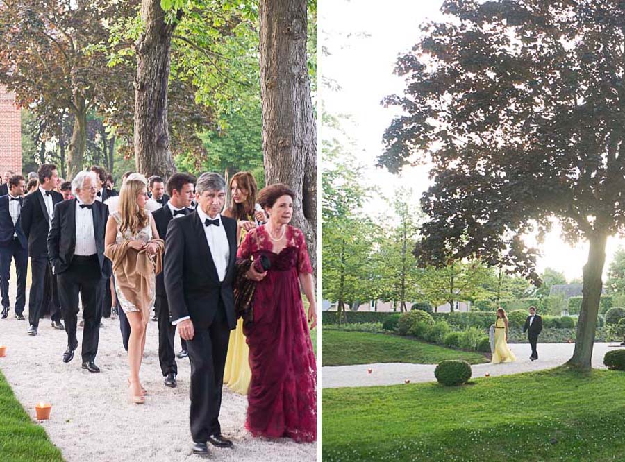 On a gorgeous summer day in July, guests enter the venue on a candle lit path.