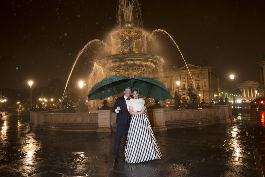 - Paris weather can be quite unpredictable. Jamie and Scott were properly prepared with two giant umbrellas from the Shangri-La to protect them through their special evening.
