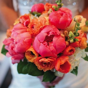In past years, hues of red or light pink or white made for a beautiful and simple bouquet. Brides are choosing deeper colors this spring, such as purple or bright coral. This is a bold look and with the right flower choices can look stunning against a white dress. If your style is more modest, try just adding just accents of bold colors to make the bouquet pop!
