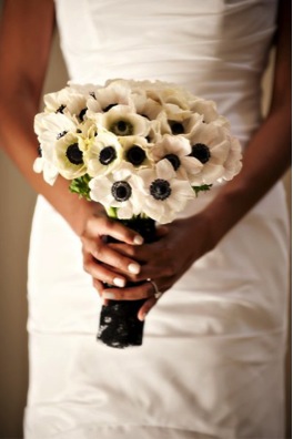 One of my favorite trends in bouquets this spring is contrasting colors. Using white anemones or calla lilies with deep colored centers makes a beautiful arrangement. Using calla lilies is still on the traditional side, but can be more updated when the centers are dark to make them stand out. This look can have many different forms depending on the style of your wedding, and you can even add different colors to make it more striking.