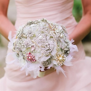 The best way to have a rare and unforgettable bouquet is to not use flowers at all! Sounds crazy, but can be really beautiful if you use accessories and gems, or even add a momentum with your favorite flowers to make it truly personal. Remember that piece of jewelry your great grandmother handed down to you that you never though you’d wear – that would be beautiful atop a gem-filled bouquet.
