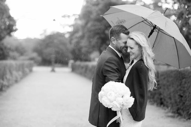 Elyse and Trent stood out wonderfully in front of the green trees and grey sky. They exchanged vows and the moment they kissed, the sun came out! It was true magic.