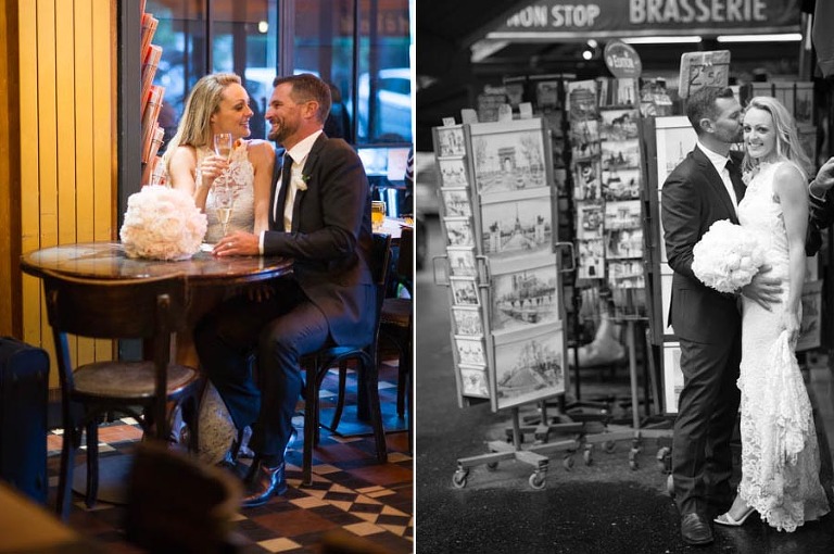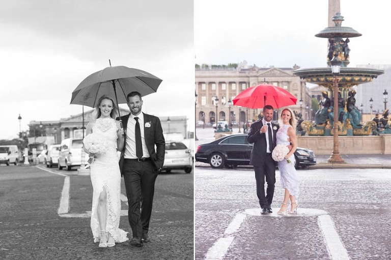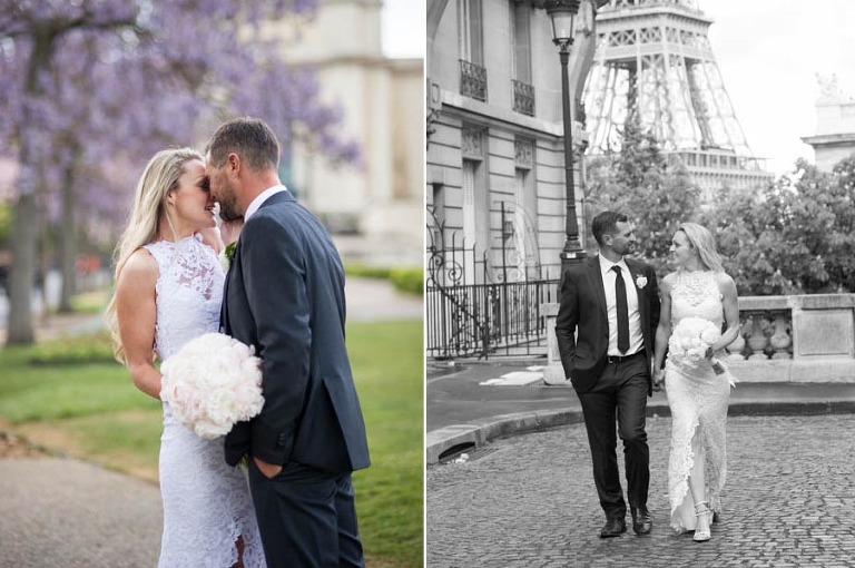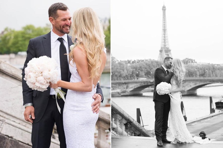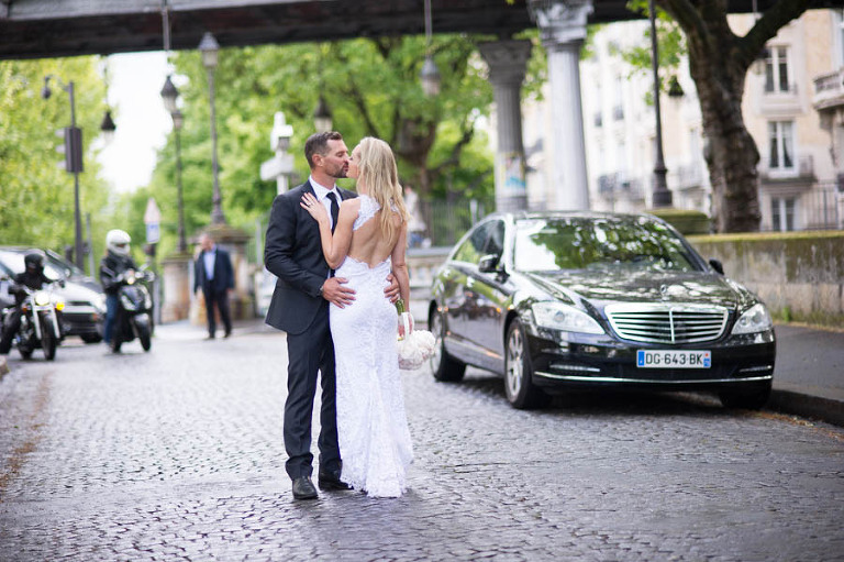 The excited couple walked around the garden for a series of romantic photos to share with their loved ones. Olivier and I brought them to the classic Mercedes and chauffeur that awaited them. Elyse and Trent were driven around accompanied by Olivier for a stunning photo tour of Paris. They stopped at all of the iconic locations including the banks of the Seine, Eiffel Tower, champ de mars and the place de la Concorde. Olivier is an amazing photographer and managed to capture the most stunning candid shots of the newlyweds.